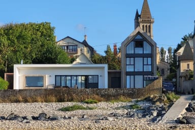Magnífica casa de diseño arquitectónico en primera línea de mar con jardín.